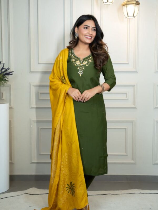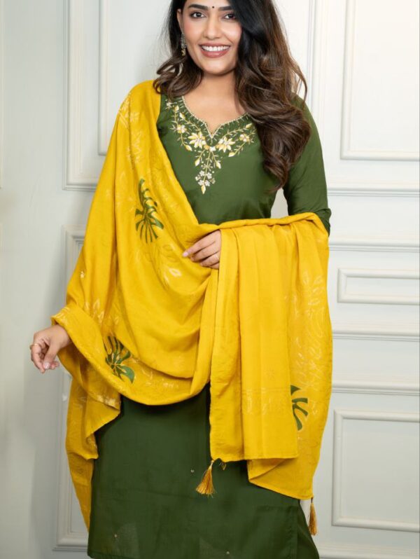 Be the first to review “Mehendi Green Designer Kurti Pant Dupatta Set”